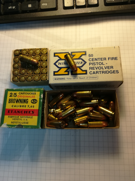 Biete aus Nachlass 55 Schuss Pistolenpatrone 7,65 Browning Messinghülse mit Vollmantel Geschoss