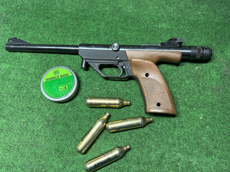 Wie abgebildet mit ein paar CO2 Kapseln und Disbolos;