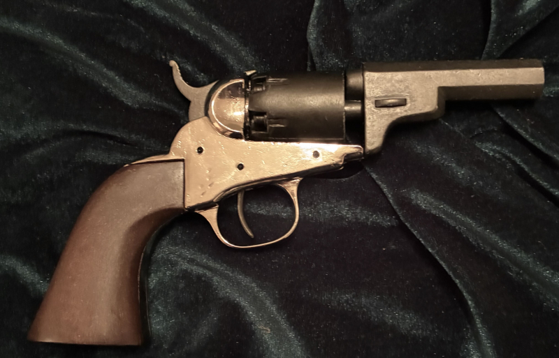 Originalgetreue Nachbildung einer Wells Fargo Revolvers. Dieser Perkussionsrevolver wurde im Jahr 1862 hergestellt. Der Revolver verfügt über Kunststoff Griffschalen, alle anderen Teile sind aus Metall (Guss) Alle Metallteile voll beweglich - vom Original kaum zu unterscheiden !!