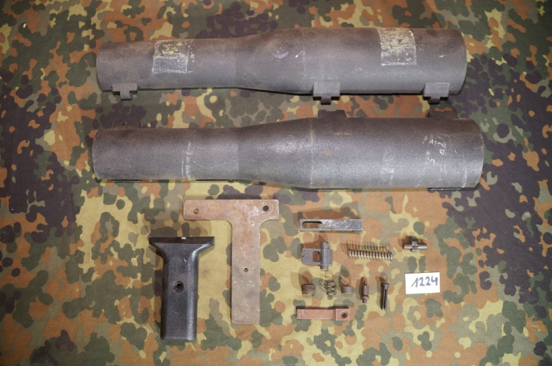 Achtung aufgepasst: original RPG7 Panzerfaust Ersatzteile-Konvolut. Mit dem seltenen für den iranischen hergestellten Hitzeschutz und Handgriff. Zustand, siehe Foto. Sie erhalten exakt die abgebildeten Ersatzteile. Beachten Sie auch unsere weiteren Auktionen. Versandkosten ausserhalb Deutschlands 22 Euro pauschal. Und nun: viel Spass beim Bieten.