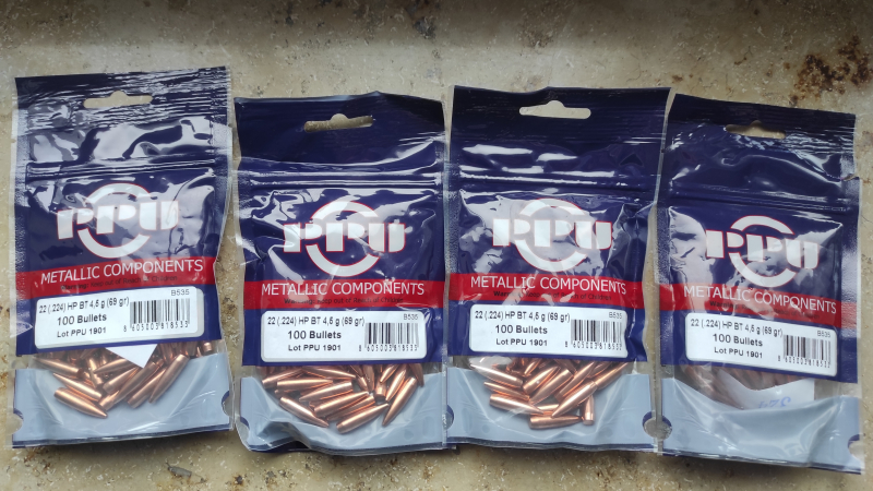 Verkaufe hier 375 Geschosse von PPU für .223, Gewicht 69 grain.