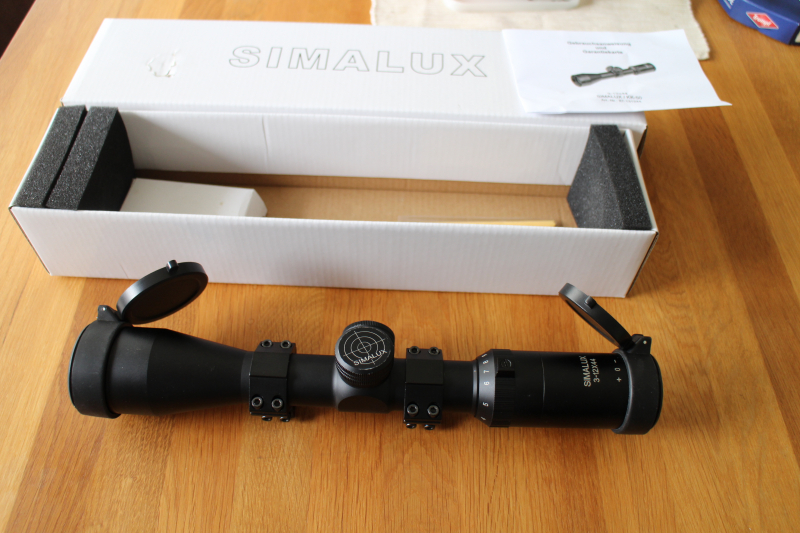 SIMALUX Zielfernrohr Gold Edition,3-12x44,mehrschichtvergütet, Parallaxfrei 50 Meter, - mit Schutzkappen (zum Aufklappen), - Mittelrohr ø: 30 mm, inkl. 11mm Ringmontage - Klickverstellung 1/8 MOA (1,8 mm auf 50 m), - Zielfernrohr ist für die DSB Disziplinen KK 50/100 Meter Auflage