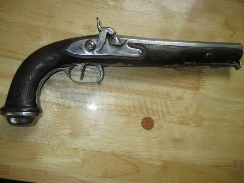 Schöner Vorderlader , altes Original mit Kimme und Korn . Länge zirka 34 cm . Kaliber zirka 17, 5 mm . Er lässt sich spannen und abschlagen . Alter Originaler Ladestock . Aptiert von Steinschloß auf Percussion . Privatverkauf . Keine Garantie oder Rücknahme .