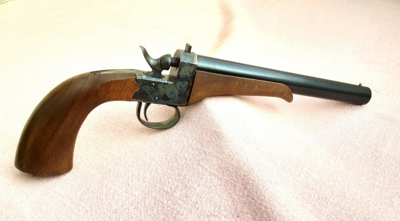 Schöner Zustand. Schloss buntgehärtet, Kleine Schraube zur Einstellung der Federspannung auf der Griffunterseite fehlt.