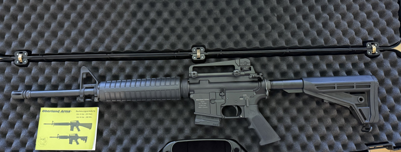 Zum Kauf steht eine Halbautomatische Büchse, Oberland Arms, Modell OA-15 M5 Target, Kal. .223Rem. mit Magazin 10-Schuss und Gewehrkoffer Das OA-15 Target ist die Matchversion der OA-15 Classic. Dieses Gewehr ist hervorragend für schnelle Zeitserien mit offenem Visier geeignet. Der Tragegriff ist abnehmbar, so dass Sie unter Verwendung von ARMS-Montagen ohne großen Aufwand ein ZF montieren können. Der Lauf ist, im Gegensatz zum normalen Classic-Modell freischwingend. Erreicht wird dies durch einen speziellen Handschutz, welcher zu einem Gewichtszuwachs um 800 g im vorderem Drittel der Waffe führt. Sie verfügt über einen sehr feinen Druckpunktabzug sowie Feinvisier im Tragegriff. Der Verkauf erfolgt im original Koffer mit Bedienungsanleitung! Schussbelastung ca. 80 Schuss Vollmantel auf dem Stand. Die Optik mit Montageschiene ist nicht Bestandteil der Auktion, kann aber gegen Aufpreis mit erworben werden! Der Zustand der Büchse ist sehr gepflegt ( s. Fotos), Lauf blank, Züge und Felder scharf! Lediglich kleine Gebrauchsspuren am Hülsenabweiser. Dieses ist ein Privatverkauf und somit keine Garantie, Rücknahme, Gewährleistung oder Umtausch! Viel Spaß beim Bieten. Verkauf natürlich nur mit gültiger EWB!