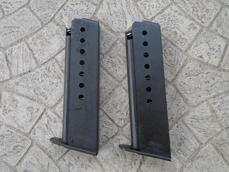 Ich biete 2 Magazine für eine Walther P38/P1. Hersteller ist laut Aufschrift Walther, weil sie phosphatiert sind, vermute ich Militärausführung. Die Magazine sind kaum gebraucht und funtionieren einwandfrei. Da ich die Waffe nicht mehr habe, gebe ich sie ab.