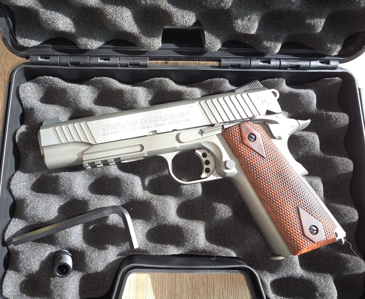 Hallo, biete hier von Swiss Arms eine SA 1911TRS in 4,5mm BB in schwarz. Die waffe ist im neuwertigen zustand und wurde nicht geschossen. Waffe ist aus Metall und hat