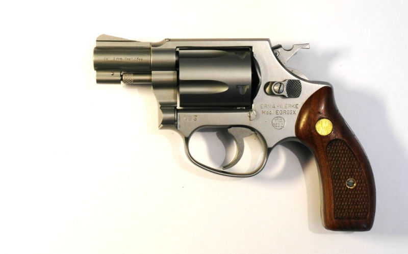 zum Verkauf kommt ein originaler Revolver Erma 66x. Die Waffe ist komplett aus Edelstahl und hat einen Smith & Wesson Rahmen J. Entsprechende Holster und Griffe passen. Gefertigt wurde der Schreckschussrevolver aus den Originalteilen der scharfen Waffe, der Erma 440. Ein zusätzlicher Lauf wurde eingezogen, eine Laufsperre angebracht und die Trommelkammern verengt. Das Griffstück ist unverändert. Dementsprechend sind das Gewicht und das Abzugsgewicht. Die Waffe liegt wie eine scharfe 38er gut und schwer in der Hand und ist nicht mit den moderneren SSW zu vergleichen.