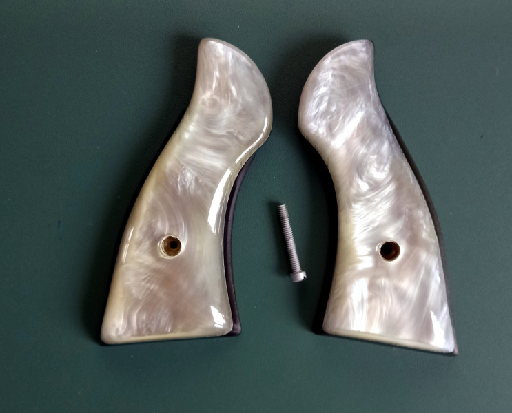 Biete Perlmutt-Imitat Griffschalen von Jay Scott USA für Smith&Wesson Revolver K/L Rahmen Square Butt (eckiger Rahmengriff). Inklusiv Schraube. Als Privatverkäufer KEINE Gewährleistung u. KEINE Rücknahme!