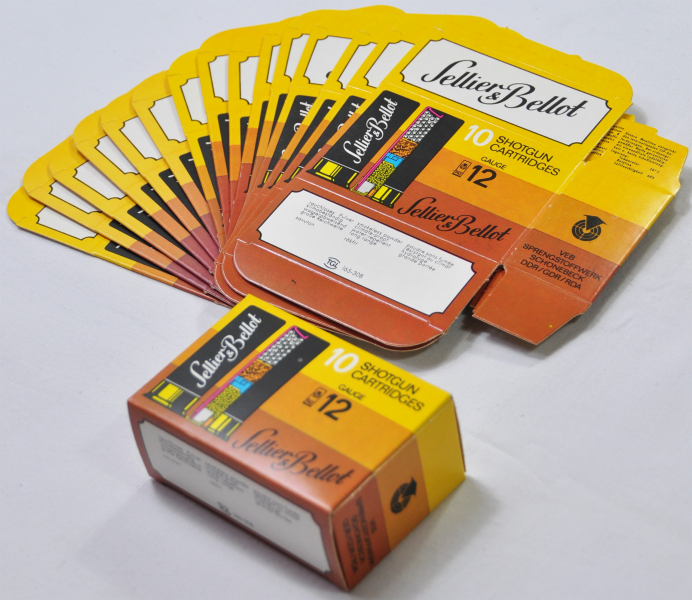 Sie bieten auf 15 Stück leere neuwertige Schachteln für „Sellier & Bellot“ Cal. 12 Schrotpatronen.