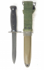 Bajonett US M8A1, Griffschalen schwarzer Kunststoff, Klinge mattschwarz brüniert, Bajonettscheide grüner Kunststoff, Koppelschlaufe grüner Webleinen mit Aufnahme für das Lochkoppel, neuwertiger Zustand siehe Bilder. Privatverkauf, nach EU-Recht, keine Gewährleistung und Rücknahme. Versandkosten innerhalb der EU 21.-Euro.