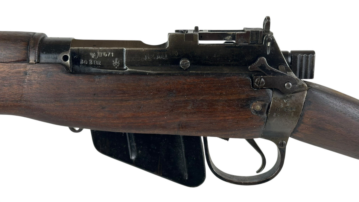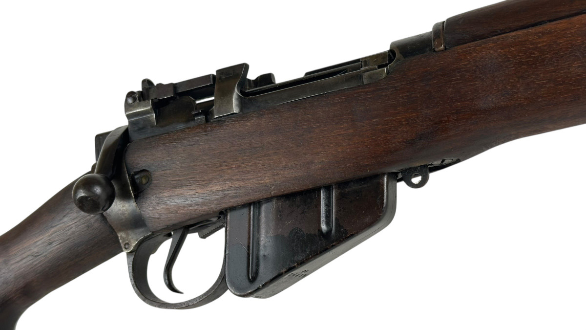 Zur Versteigerung kommt hier ein Lee Enfield No.4 MK 1 im typischen Kaliber .303 British. Mit gültigem Beschuss. Gefertigt wurde das gute Stück vermutlich 1944. Siehe Fotos und Detailaufnahmen.