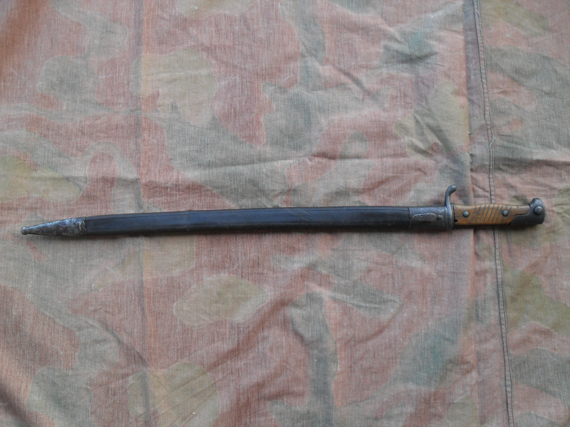 Leider verschiedene Einheitenstempel auf Scheide und auf dem Seitengewehr.