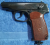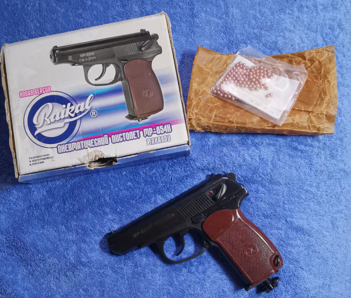 Zum Angebot kommt hier eine gebrauchte Baikal-Makarov MP-654K, Ganzstahl für verkupferte bzw. Blei-BBs im Kaliber 4,5 mm und betrieben mit einer 12g CO2 Kartusche. Die Waffe hat das F-Zeichen im Fünfeck. Sie besteht zu mehr als 90% aus Teilen einer echten Makarov, incl. den original Bakelit Griffschalen. Sie ist nicht zu vergleichen mit der Chinaware, die es für gewöhnlich zu kaufen gibt. Siehe auch die Seriennummer die auf dem Bild zu erkennen ist. Kenner wissen Bescheid. Die Pistole wurde wenig geschossen und ist in einem technisch wie optisch guten Zustand. Ein paar altersbedingte Gebrauchsspuren sind aber natürlich vorhanden. Bitte sehen Sie sich die Fotos an, die zur Artikelbeschreibung gehören.