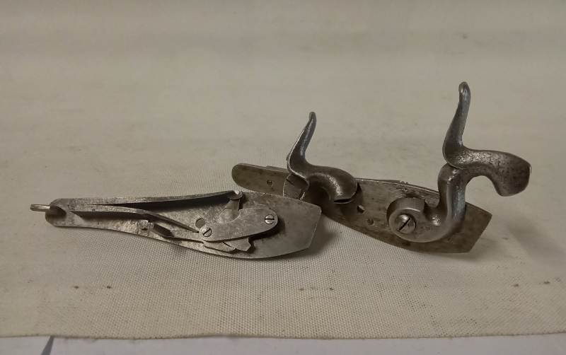 1 Paar Perkussionschloße, Rohlinge aus Lütticher Heimarbeit, rückliegende Federn. Privatverkauf, daher keine Garantie oder Gewährleistung, what You see is what You get...