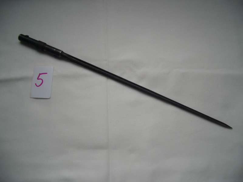 Originales französisches MAS 36-Bajonett ( Nr.5 ) aus dem 2. Weltkrieg. Oft als Nadelbajonett bezeichnet. Schöner Zustand. Funktion der Verriegelung ist einwandfrei. Gesamtlänge: 43 cm, Klingenlänge: 34 cm. Verriegelungsfeder etwas schwach.