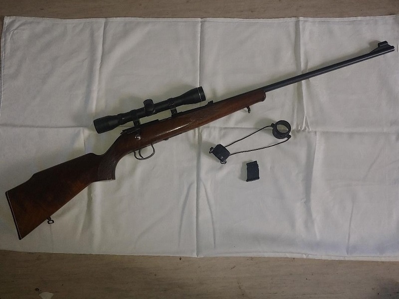 Zur Versteigerung kommt eine Kleinkaliberbüchse des Herstellers Anschütz im Kaliber .22lfB; Holzschaft mit deutscher Backe. Zum Lieferumfang gehört ein Zielfernrohr der Marke Lichter in 4 x 32. Das ZF funktiniert einwandfrei, solllte jedoch nochmal komplett neu montiert werden. Das Gewehr lässt sich auch über Kimme und Korn schießen. Weiterhin verfügt die WEaffe über ein Magazin. Das Holz hat ein paar leichte Kratzer auf der linken Seite.