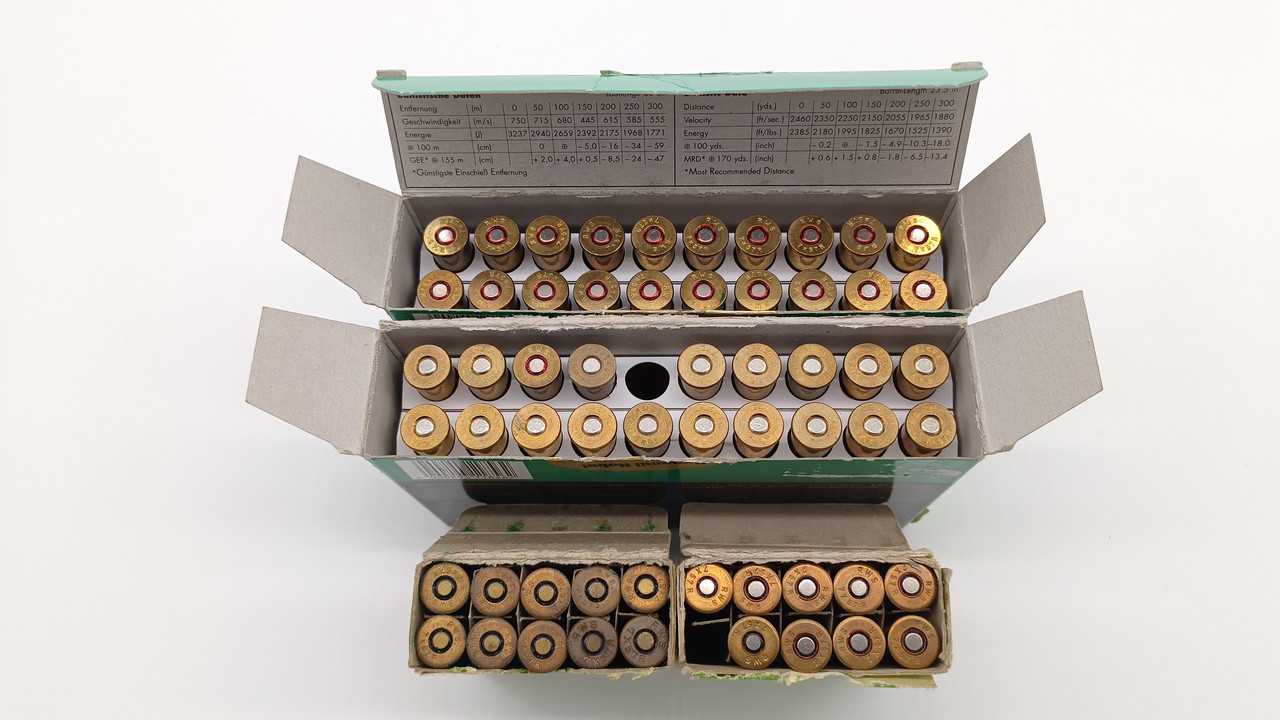 - Selbstabholung möglich. - Zustellung von Montag-Freitag ohne Avis. - Keine Funktionsgarantie der Munition. - Munition zeigt teilweise Anlassfarben. - Umkarton z.T. nicht deckungsgleich mit Inhalt. - Stückzahlangabe ohne Gewähr. - EWB erforderlich!