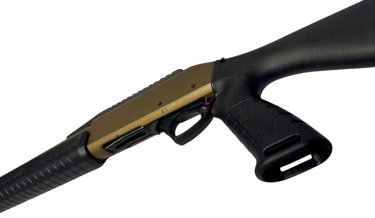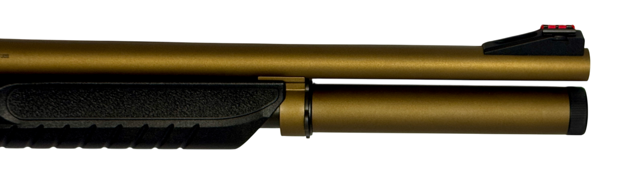 Die Flinte ist bereits vom Werk aus mit einer roten Leuchtkorn Visierung auf einem Kornsattel ausgestattet, dieLauflänge beträgt 20 Zoll (510mm) und die Gesamtlänge beträgt 98cm.