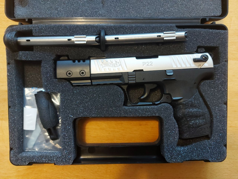 Modell: Walther P22Q Target Kaliber: .22 l.r. Lauflänge: 5" (Target-Version mit Laufgewicht)