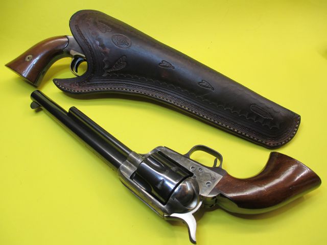 Beboten wird ein von mir in Handarbeit aus Deutschem Rindsleder hergestelltes Holster, Rechtshand . Passt für 7,5 ZB.1873 Saa.Der hier abgebildete Saa1873 bzw.VL Revolver 1858 in 7,5 zoll ist nicht gegenstand der Aktion. Beboten wird nur das Holster,Rückenschlaufe passst für8 cm Gürtel.