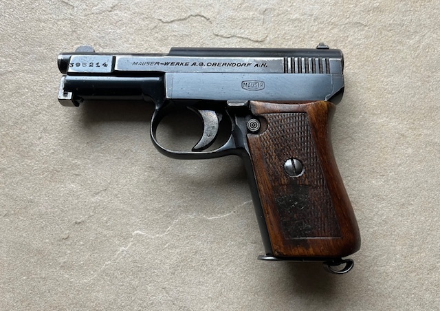 Die Waffe stammt aus meiner Sammlung und wurde von mir nicht geschossen. Sehr schöne Pistole in altersgemäßem Zustand.