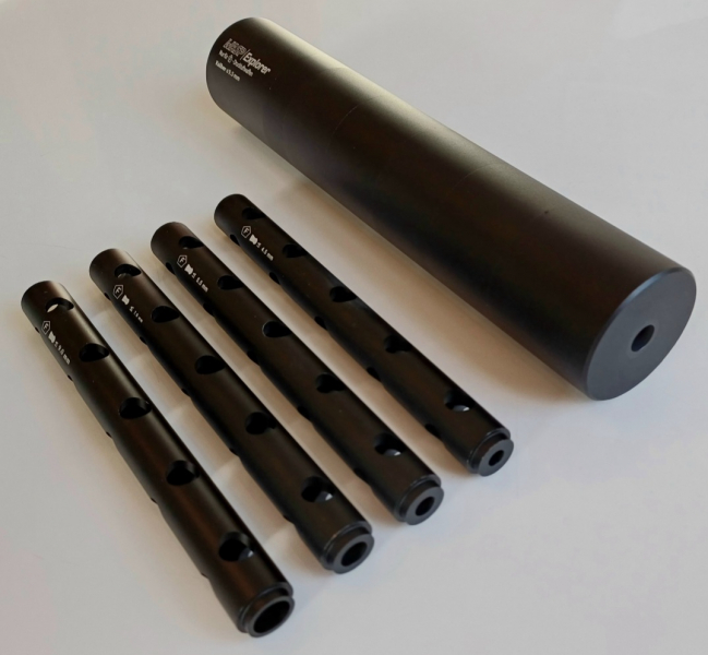 Zum Verkauf steht ein WASP EXPLORER Universal-Schalldämpfer für Druckluftwaffen mit F-Stempel und 5/8 x 24-Gewinde. Der Dämpfer wurde nur einmal auf einer BT65 getestet und liegt seit dem Verkauf des Luftgewehrs nur noch rum. Er ist also neuwertig, funktioniert gut und hat keine Macken oder Fehler. Der Dämpfer ist sehr hochwertig, hat gute ein top Qualität und ist sehr stabil gebaut. Ein "paar" Informationen für alle, die das Teil nicht kennen: Dieser hochwertige Luftgewehrschalldämpfer ist aus anodisiertem Aluminium gefertigt und für erlaubnisfreie Druckluftgewehre mit F-Stempel bis zu einem Diabolodurchmesser von 9,00 mm universell nutzbar. Neupreis: 400 €. Er verfügt über sechs voneinander getrennte Kammern, die den Schall wirksam dämpfen. Der Schalldämpfer wird direkt auf die Mündung geschraubt, er überragt den Lauf der Waffe in Richtung des Schützens nicht. Daher es ist weiterhin möglich die Visiereinrichtung (Korn, Kornsockel) montiert zu lassen. Vorraussetzung für die Montage dieses Schalldämpfers an Ihrer erlaubnisfreien Druckluftwaffe mit F-Stempel ist ein vorhandenes 5 /8 x 24 Mündungsgewinde oder aber die Nutzung eines universellen Laufgewinde-Adapters. Im Lieferumfang enthalten sind 5 Kalibereinsätze für Diabolodurchmesser bis 4,5 mm, bis 5,5 mm, bis 6,35 mm, bis 8,0 mm und bis 9,0 mm. Dieses Modell passt z.B. an das F-Druckluftgewehr Hatsan BT65 Carnivore im Kaliber 7,62 mm und 9,00 mm. Aufgrund des universellen Aufbaus benötigt man für unterschiedliche Kaliber nur noch diesen einen Schalldämpfer. Durch Austausch der Kalibereinsätze lässt sich dann angepasst an das Kaliber ein bestmögliches Ergebnis erzielen, da der Schlupf um den Diabolo herum gering gehalten werden kann. Der Schalldämpfer kann zur Reinigung auseinandergenommen werden. Länge ca.: