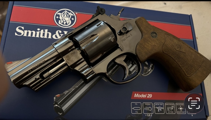 Diese Replika kommt im klassischen Design des Urvaters aller Magnum-Revolver. Das Modell besteht aus Vollmetall und ist hochglanzbrüniert. Die Griffschalen sind aus hochwertigem Kunststoff gefertigt. Der Co2-Revolver verfügt über eine höhen- und seitenverstellbare Kimme. Weitere Merkmale sind ein Single/Double Action Abzug sowie eine manuelle Sicherung an der Trommelentriegelung. Der Antrieb erfolgt über eine Standard 12 Gramm Co2-Kapsel. Das Kapsel Anstichtool ist im Griff verborgen. Die Magazinkapazität beträgt 6 Schuss BB im Kaliber 4,5 mm. Hierzu befinden sich im Lieferumfang Metall-Ladehülsen.
