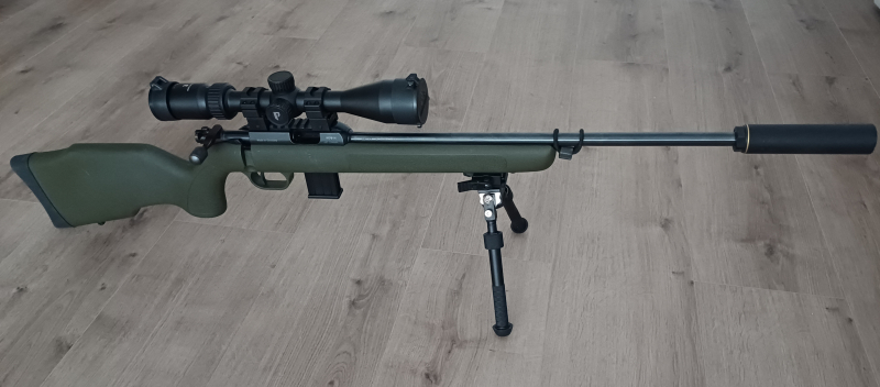 Der auf den Fotos sichtbare Schalldämpfer Stalon RF dient nur zur Demonstration. Er kann auf Wunsch separat für 60 € verkauft werden (gegen gesonderte Vereinbarung). Die Nutzung eines solchen Dämpfers an dieser Waffe ist nicht erlaubt. Bei Interesse oder für weitere Fotos / Fragen bitte mailen.