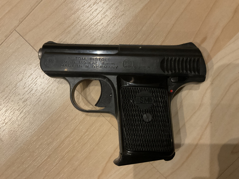 In dieser Auktion gibt es was noch kleineres und praktisch nicht mehr zu findende Röhner SM 110 im Klaiber 8mmKnall. Der Beschuss ist von 1973 und die Laufsperre ist von vorn nicht zu sehen. Für ihr alter macht sie aber einen sehr guten Eindruck.