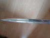 Vernickelte gerade 23 mm breite Stahlklinge (Pallasch-Form), Schörklinge, zur Mittelspitze hin zweischneidig.