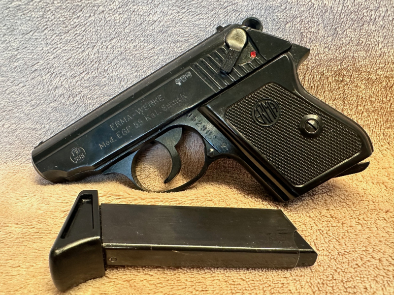 Zum Verkauf steht eine ERMA EGP55. Die Waffe ist im Kaliber 8 mm (Gas / Platzpatronen) ausgelegt und verfügt über einen zusätzlichen 15-mm-Lauf zur Verwendung mit Signal-/Pyrotechnikpatronen. Ideal für Signal-/Alarmzwecke, Ausbildung mit Platzpatronen oder als Sammlerstück.