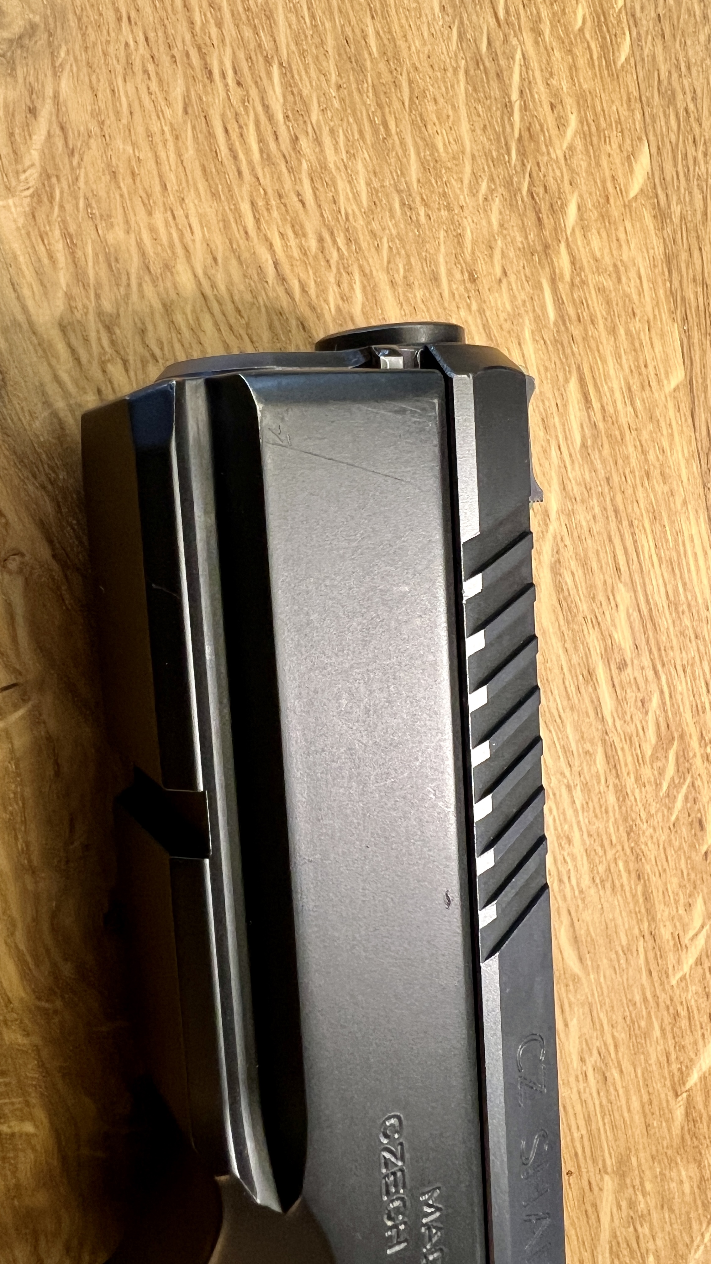Zur Zeit sind ein flacher EemannTech-Abzug, zudem ein Feder-Tuning-Kit und hölzerne Griffschalen verbaut, welche der KW einen einzigartigen Look verleihen!