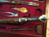 Sehr schöner Mahagoni Kasten mit 2 Vorderladerpistolen kal.44, mit entsprechendem Zubehör. Alles ist in gutem Zustand und hat kaum Gebrauchsspuren. Der Kasten ist abschließbar und kann aufgehängt werden.