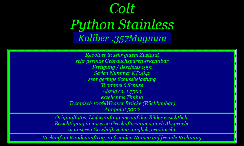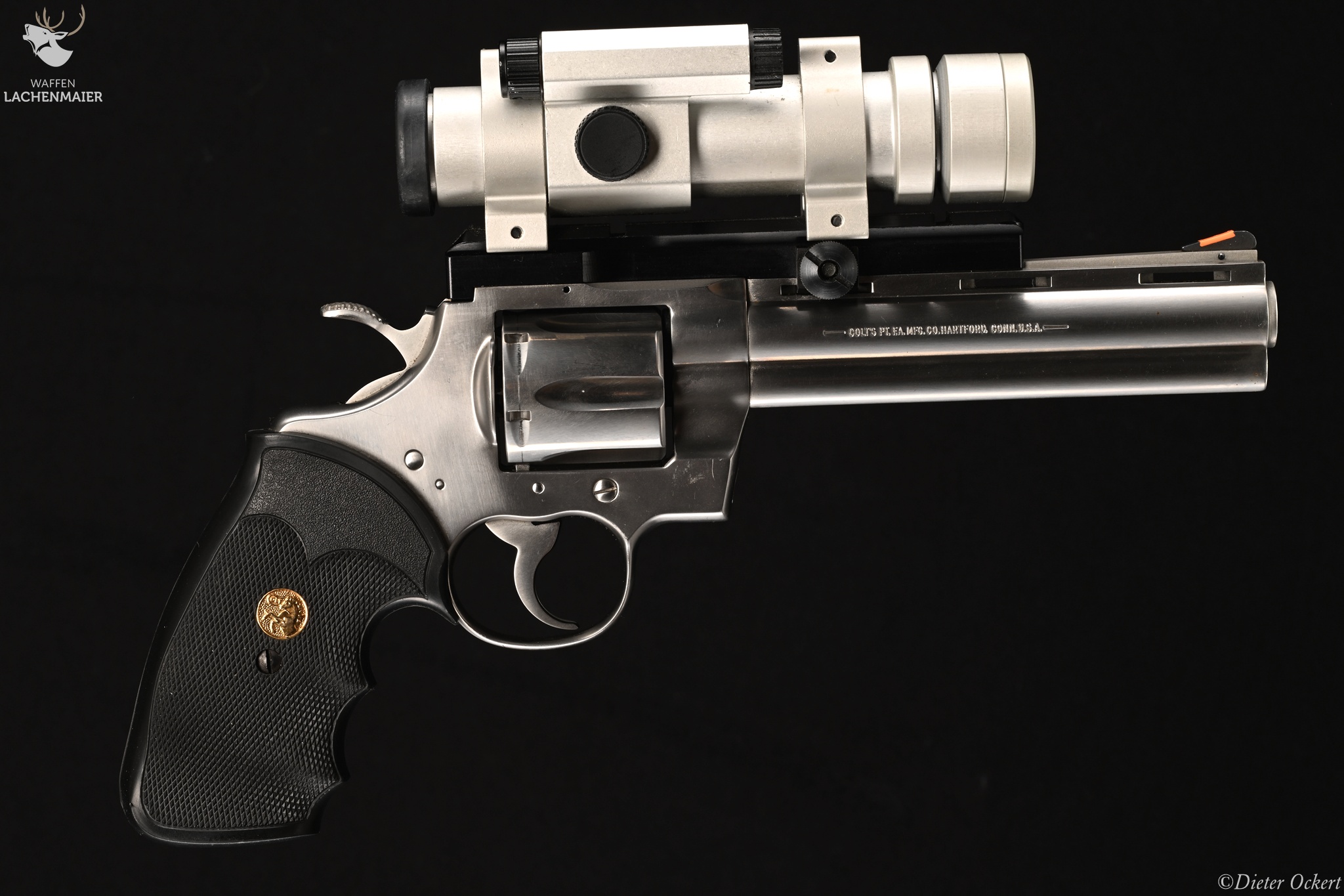 COLT Python Stainless Bj. 1991 mit 6" Lauf Kaliber .357 Magnum mit Aimpoint