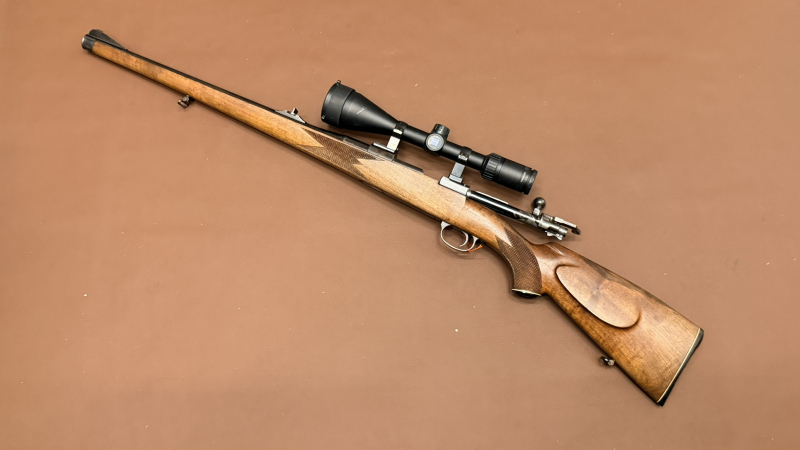 Klassische Kettner Repetierbüchse im beliebten Kaliber 7x64 — ideal für die universelle Jagd und bekannt für ihre Präzision. Die Waffe ist im eleganten Vollschaft-/Stutzenformat ausgeführt und mit einem klaren Zeiss Terra 3X 4–12x50 Zielfernrohr (Z-Plex Absehen) ausgestattet, montiert über Montageringe aus Stahl. Lauf und System befinden sich in gepflegtem, technisch einwandfreiem Zustand. Der Lauf ist innen spiegelblank, Repetiermechanik läuft sauber und präzise. Eine solide, führige Alltagswaffe mit klassischem Holzschaft und ausgewogener Balance.