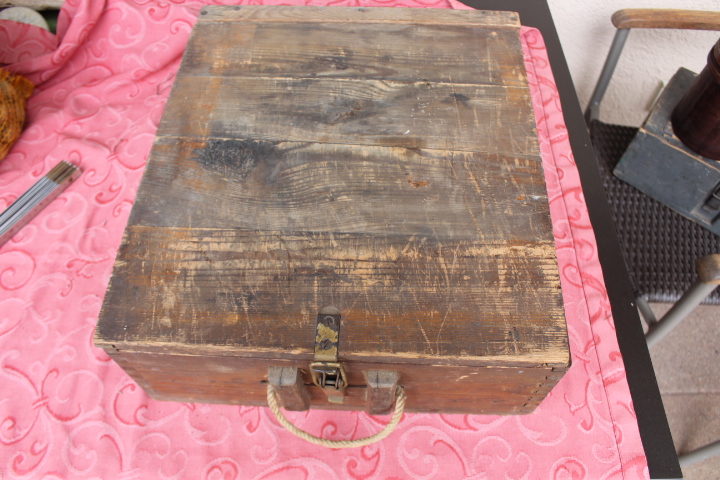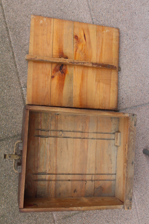 In unberührtem Fundzustand. Keine Beschädigungen. Späte Holzversion die wohl nicht mehr zum Einsatz kam. Wurde in einer Fabrik bis in die 80er als Lagerkiste verwendet. Porto EU = 19,50€