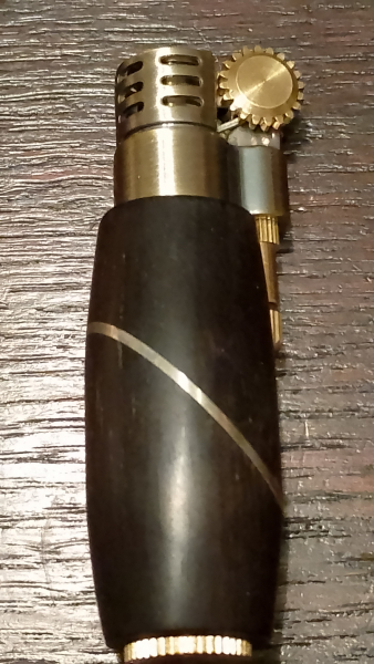 Angeboten wird ein neues Sturmfeuerzeug, welches mit Benzin betrieben wird. Hergestellt ist das Feuerzeug aus Ebenholz und Neusilber. Es ist ein zweites Feuerzeug vorhanden, dessen Einlage aus Messing ist. Da Privatauktion keine Garantie und Rücknahme.