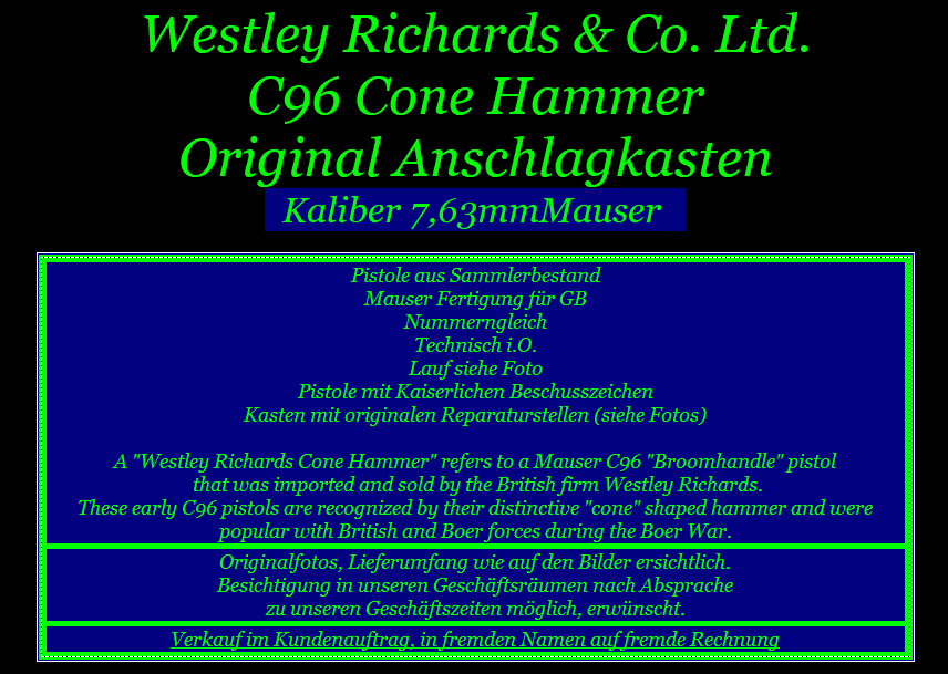 Westley Richards & CO. Ltd. Mauser C96 Cone Hammer Kaliber 7,63mmMauser