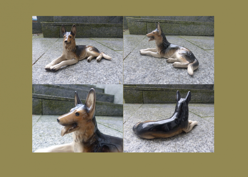 Verkaufe aus der jagdlichen Sammlung meines Vater diese Cortendorf Keramik Figur eines liegenden Schäferhund.
