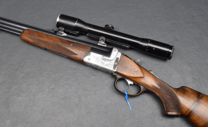 Diese exklusive Bockbüchsflinte aus den 1950er Jahren vereint handwerkliche Perfektion mit zuverlässiger Funktionalität.