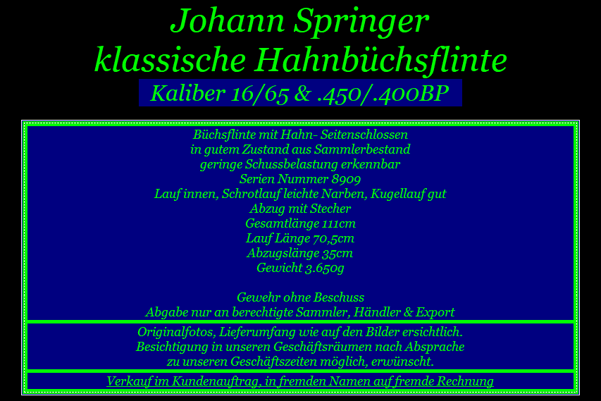 Johann Springer / Wien Büchsflinte mit Hahnschlossen Kaliber 16/65 & .450/.400BP
