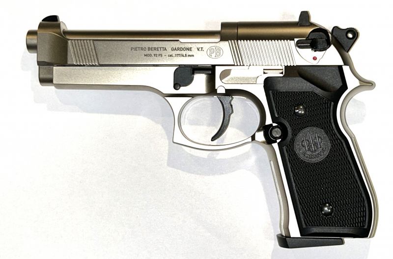 CO2 Pistole Beretta M 92 FS nickel schwarze Kunststoffgriffschalen Kaliber 4,5 mm
