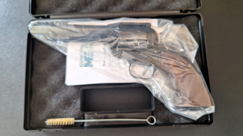 Single Action Army LEP Revolver im Kaliber 22 mit Waffenkoffer, Putzbürste und Bedienungsanleitung.