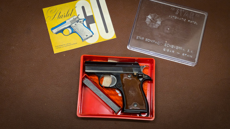 📦 Lieferumfang: ✅ STAR Starlet, Kal. 6,35 mm (.25 ACP) ✅ Originalbox (mit Einlage) ✅ Bedienungsanleitung (Original) ✅ Reinigungsstab ✅ 2 × Magazin (siehe Fotos)