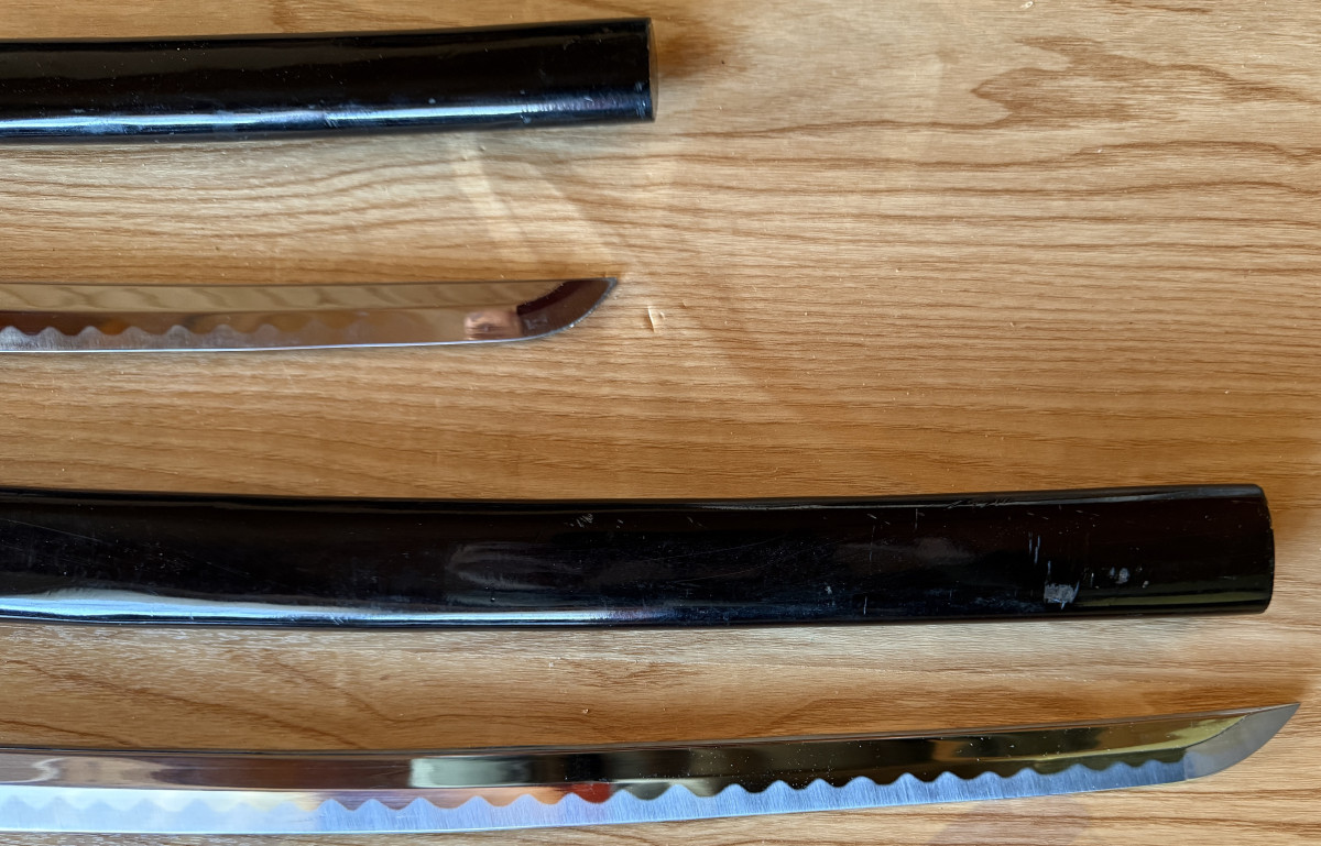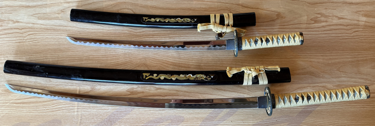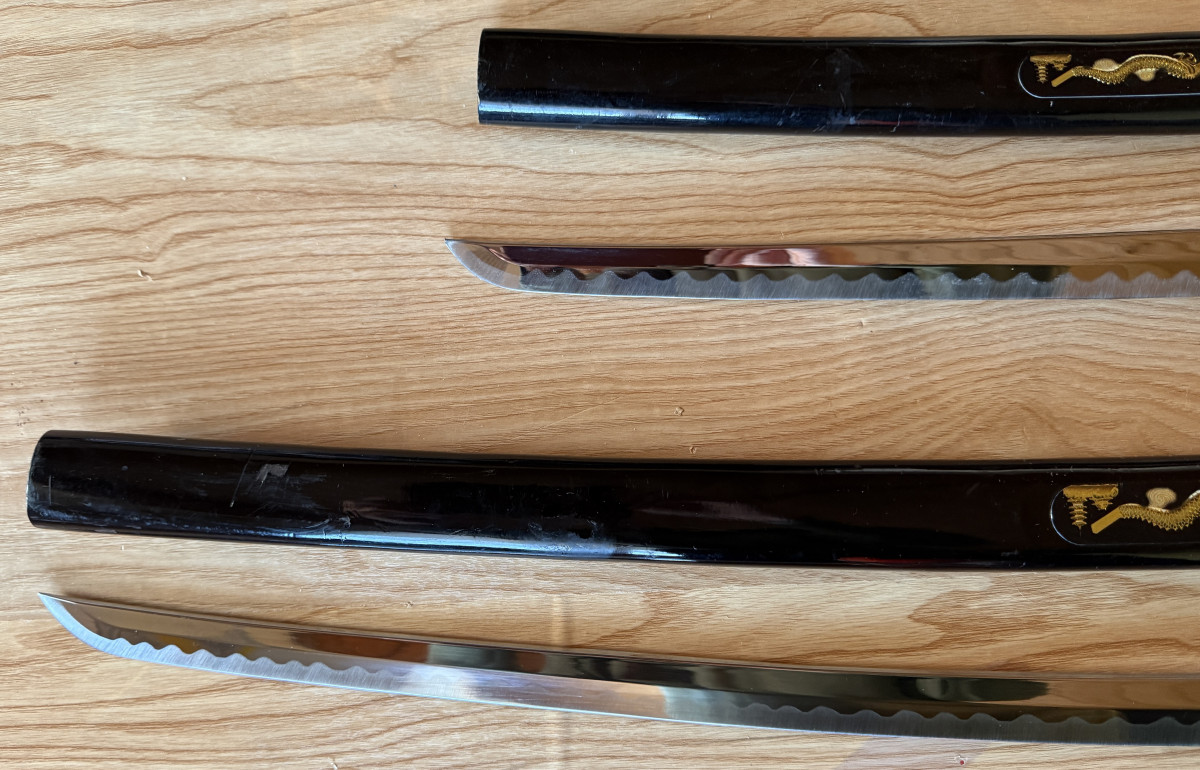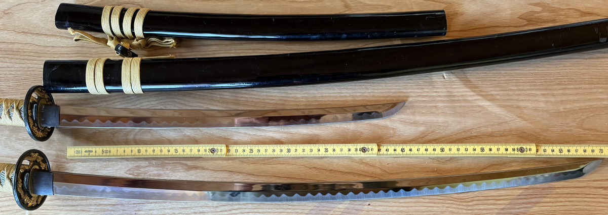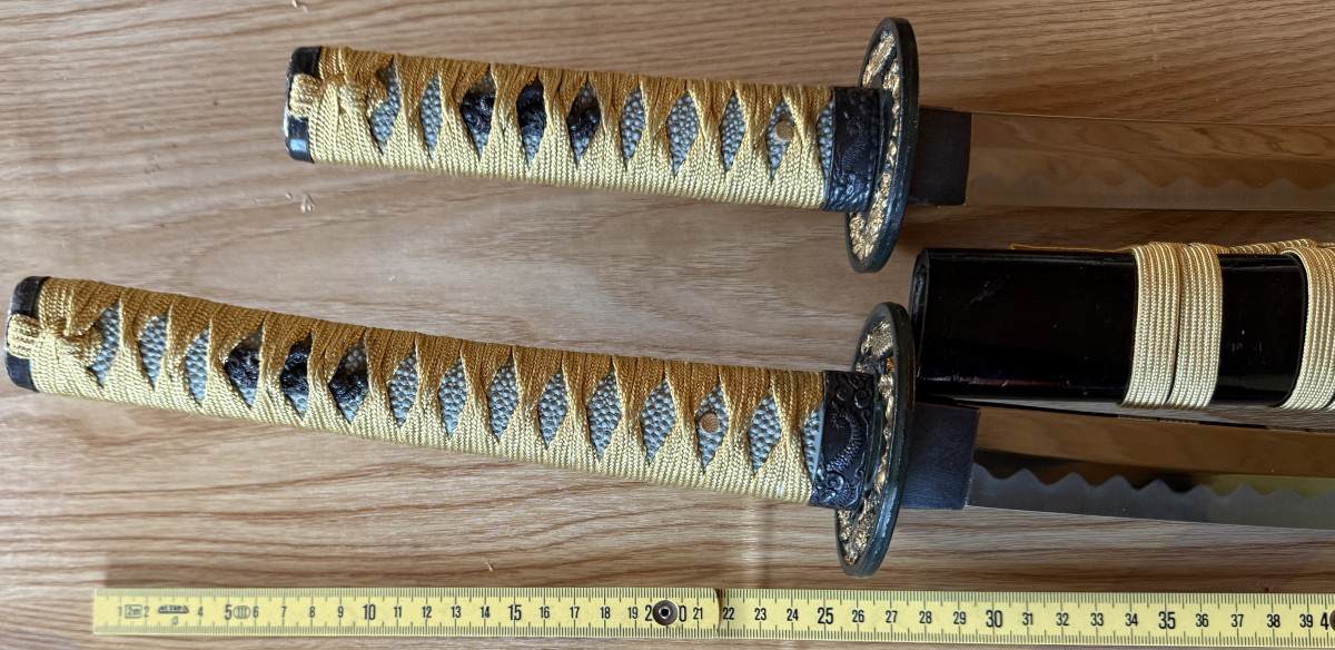 Die Klingen sind nicht geschärft. Sonst sind diese beiden Katana – Schwerter in Ordnung.