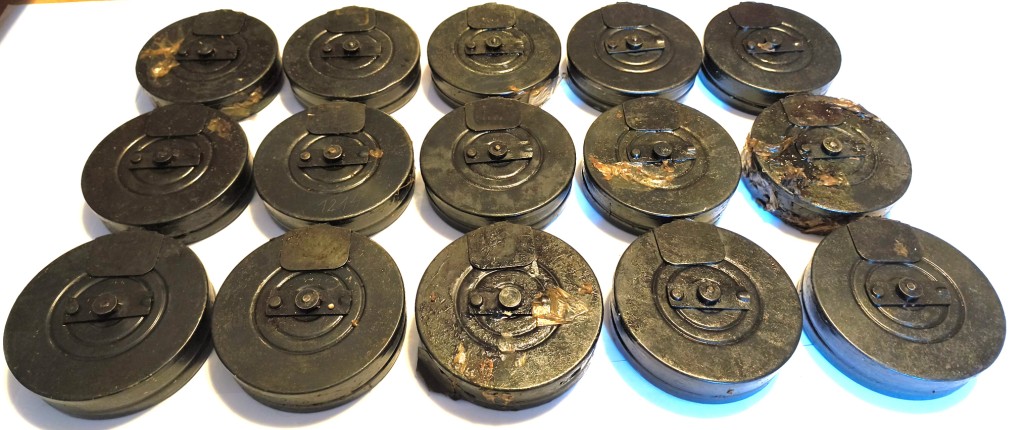 Zusatzinformation: Die Magazine weisen Gebrauchsspuren auf (leichte Abschürfungen, Kratzer, Abnutzung der Originaloxidation, Verschmutzungen etc. etc.). Die Magazine sind mit einer originalen, dicken Schicht sowjetischen Militärfetts mit einem spezifischen Geruch überzogen. Auf die meisten Magazinen sind Seriennummern eingraviert oder mit einem Griffel geschrieben.