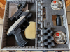 Sammlerauflösung: Verkaufe unbenutzte CP99 von Walther. CO₂ Kaliber: 4,5 mm Diabolo. Vernickelte Ausführung. Mit seitlich verstellbarer Kimme. Abzugssicherung und fertig montierter Red dot Laser Zielvorrichtung im abschließbaren Alukoffer 2 Schlüssel anbei (siehe Fotos) Dabei sind auch 2 versiegelte je 500 Diabolo Dosen der Firma Hänel N. plus 7 CO₂ Kartuschen. Ich versende versichert als Paket auf meine Kosten!
