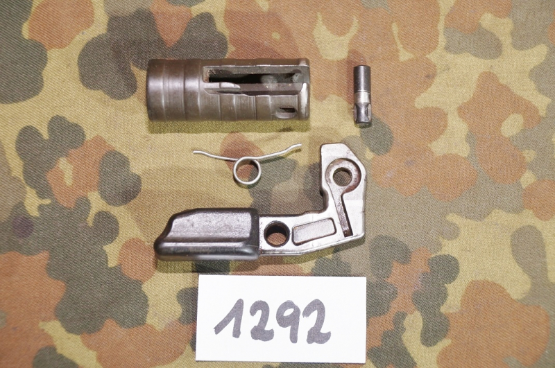 Achtung aufgepasst: Sie bieten hier auf einen original G3 Ladehebel / Spannhebel in schwarz. Komplett mit Führungsbuchse, Feder und Bolzen. Zustand, siehe Foto. Sie erhalten exakt die abgebildeten Ersatzteile. Alle Angaben nach bestem Wissen und Gewissen. Bitte beachten Sie auch unsere weiteren Auktionen. Viel Spass beim Bieten.
