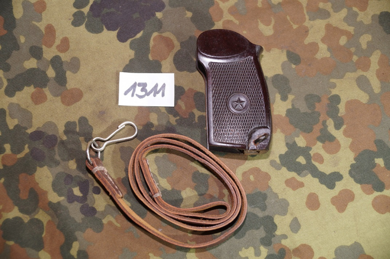 Achtung aufgepasst: Makarov Pistolen Griffschale (rot-braun mit Stern) russisch mit Fangriemen. Zustand, siehe Foto. Es handelt sich bei allen von uns angebotenen Ersatzteilen um FREI VERKÄUFLICHE TEILE. Sie erhalten exakt die abgebildeten Ersatzteile. Alle Angaben nach bestem Wissen und Gewissen. Bitte beachten Sie auch unsere weiteren Auktionen. Viel Spass beim Bieten. Versand ausserhalb Deutschlands 22 Euro.